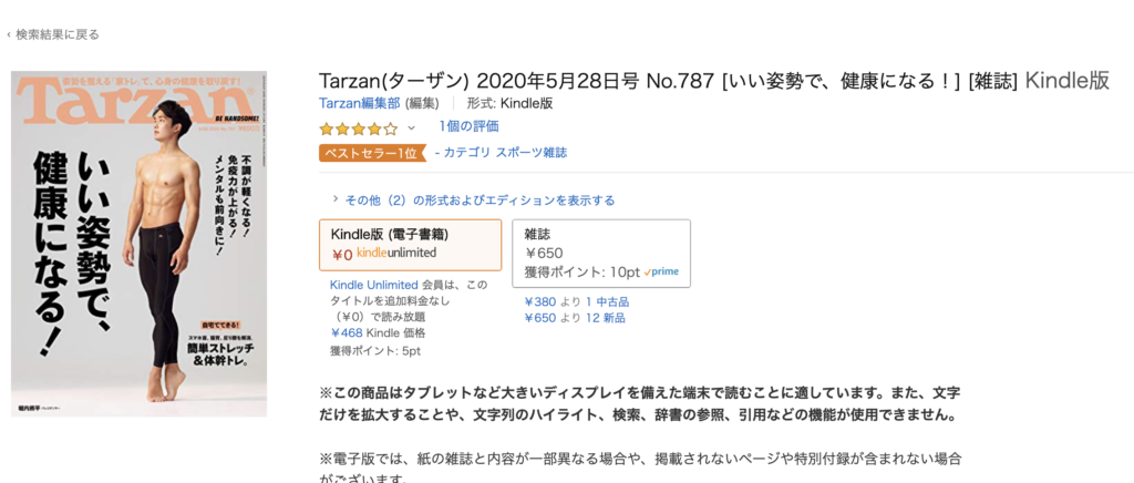 筋トレマニアのボクにとっては、「TARZAN」も読み放題なのは超うれしい。